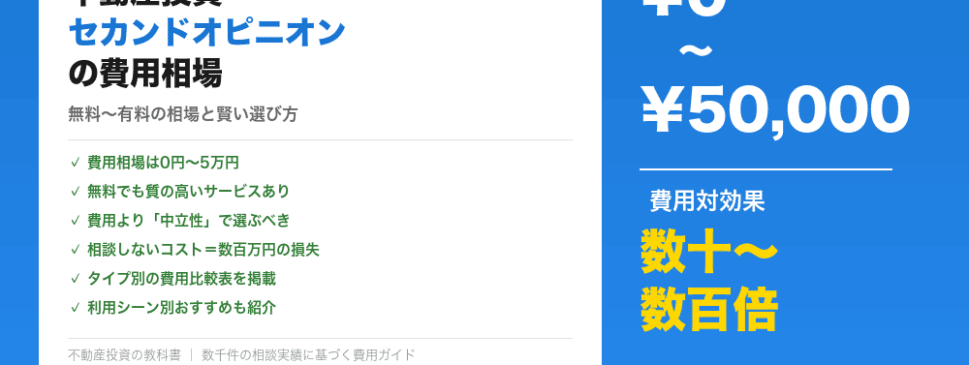 不動産投資セカンドオピニオンの費用は?無料〜有料の相場と賢い選び方