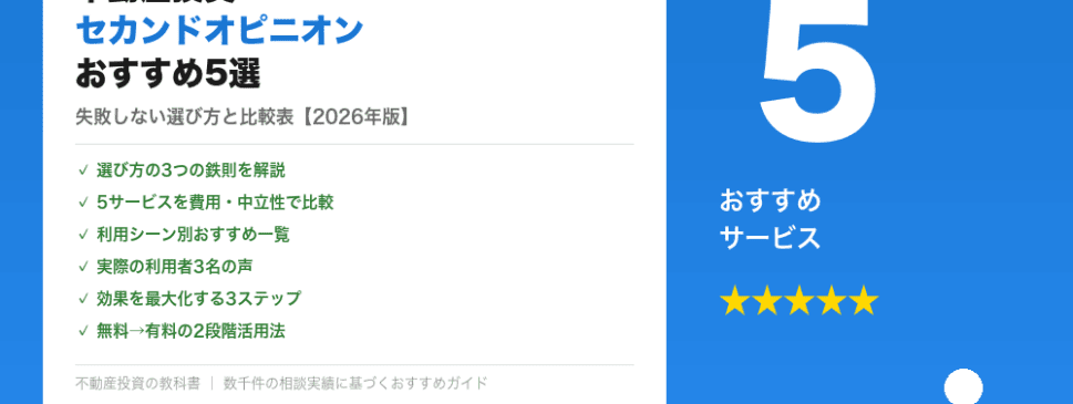 不動産投資セカンドオピニオンおすすめ5選|失敗しない選び方と比較表【2026年版】