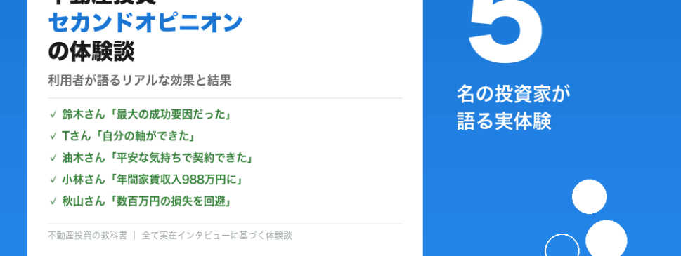 不動産投資セカンドオピニオンの体験談5選|利用者が語るリアルな効果と結果