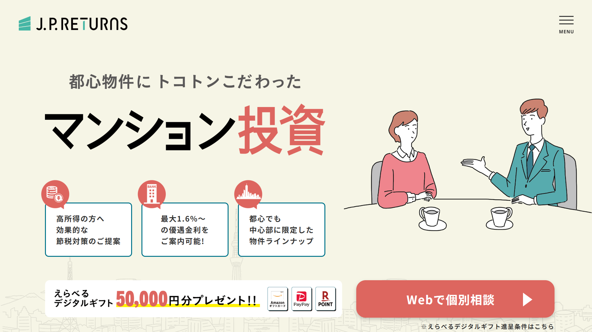 不動産投資をご検討中の方は、JPリターンズを利用してみてはいかがでしょうか。