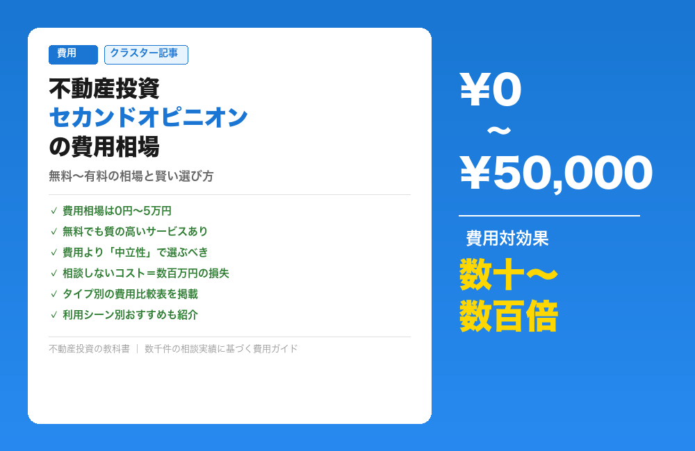 不動産投資セカンドオピニオンの費用相場|無料〜有料サービスの違いと賢い選び方